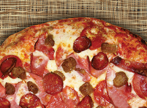 Salami, pepperoni, Canadian bacon, smoked ham, linguica & Italian sausage