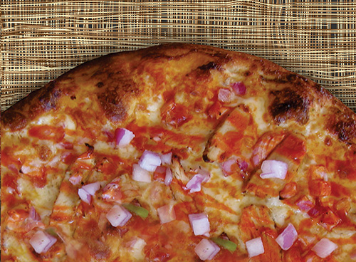 BBQ sauce, grilled chicken, bacon, pineapple, red & green bell peppers, red onions & fresh tomatoes