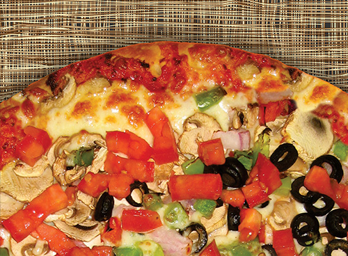 Artichoke Hearts • Bell Peppers • Jalapeño Peppers • Fresh Tomatoes Sun-dried Tomatoes • Zucchini • Garlic • Green Onions • Spinach Black Olives • Fresh Mushrooms • Pineapple • Red Onions