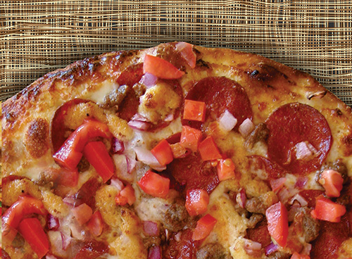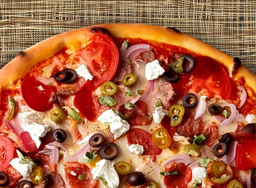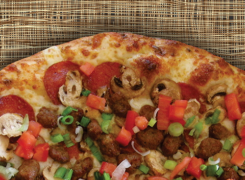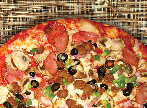 Salami, pepperoni, Italian sausage, sweet red & green bell peppers, fresh mushrooms, onions & black olives